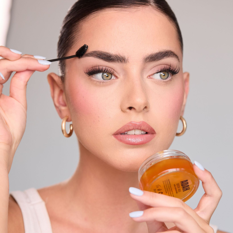 A specially formulated clear wax for brow styling, providing the desired look without any color residue. Contains keratin, glycerin, and ingredients beneficial for eyebrow hair growth and strengthening the hair fiber. Comes with a dedicated brush for eyebrow grooming.